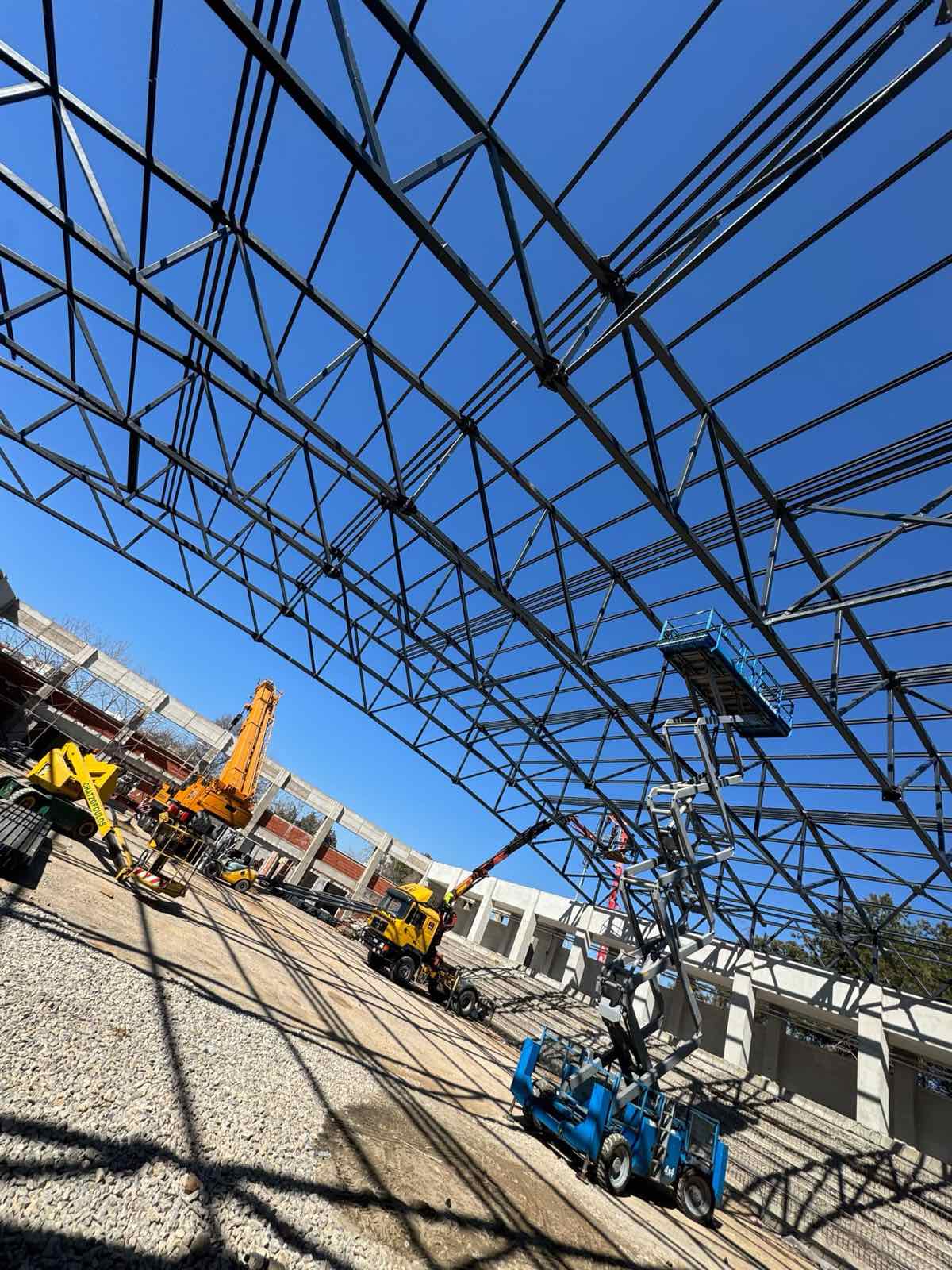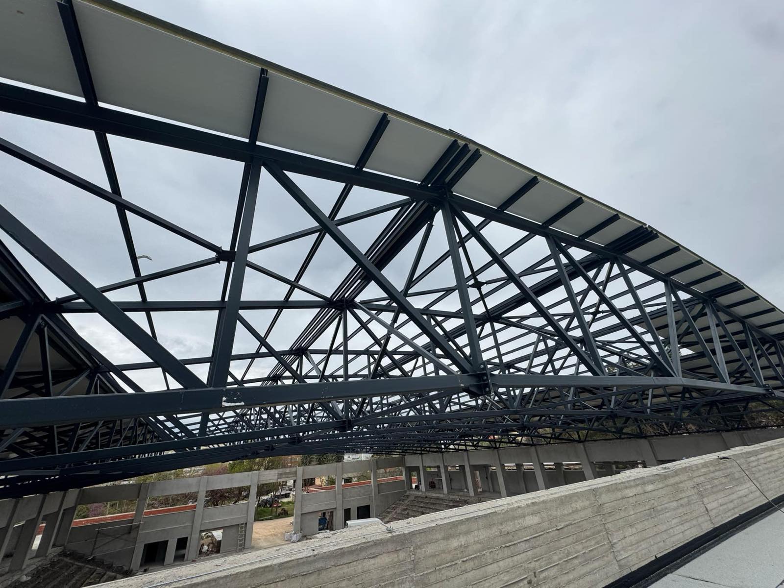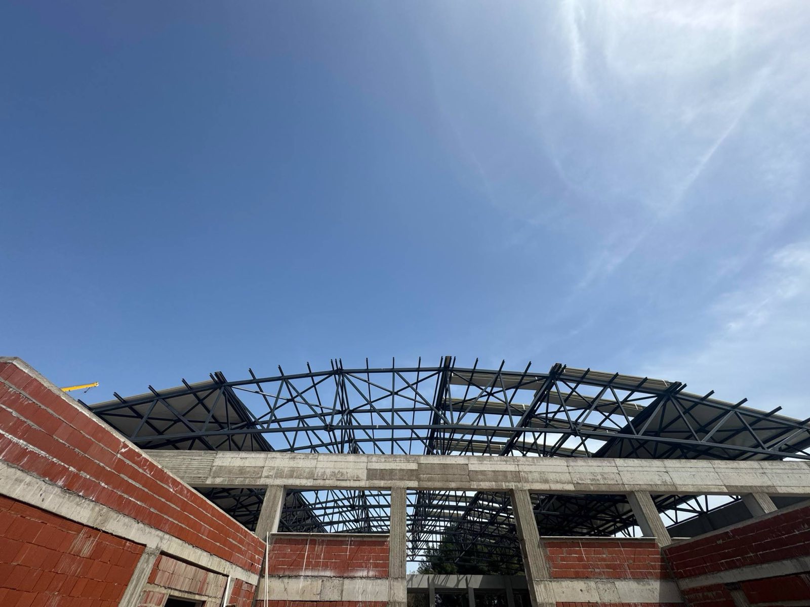 Η μεταλλική κατασκευή στέγης τύπου δικτυώματος, με άνοιγμα 41 μέτρων από άκρη σε άκρη, αποτελεί ένα δύσκολο και απαιτητικό έργο, τόσο στην κατασκευή όσο και στην υλοποίηση.