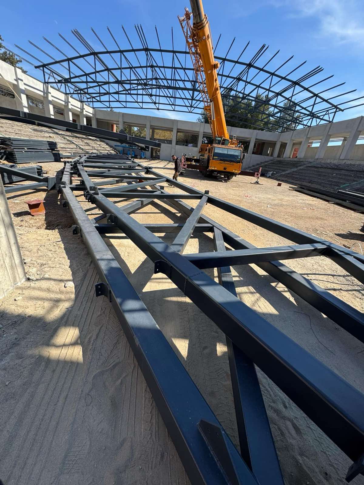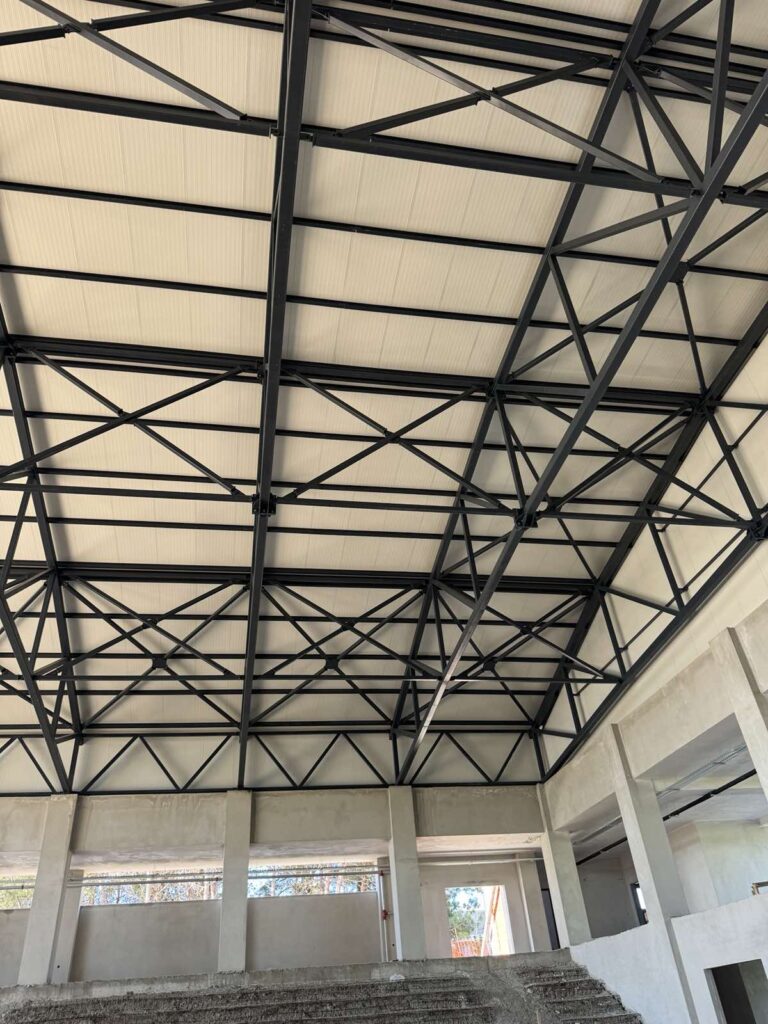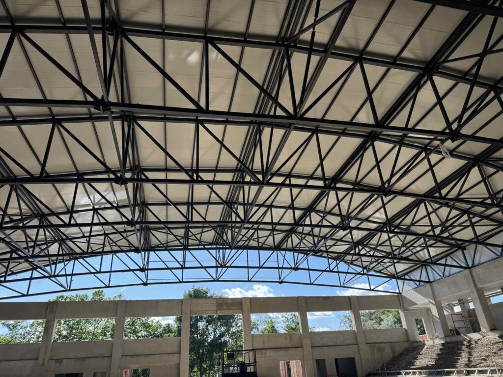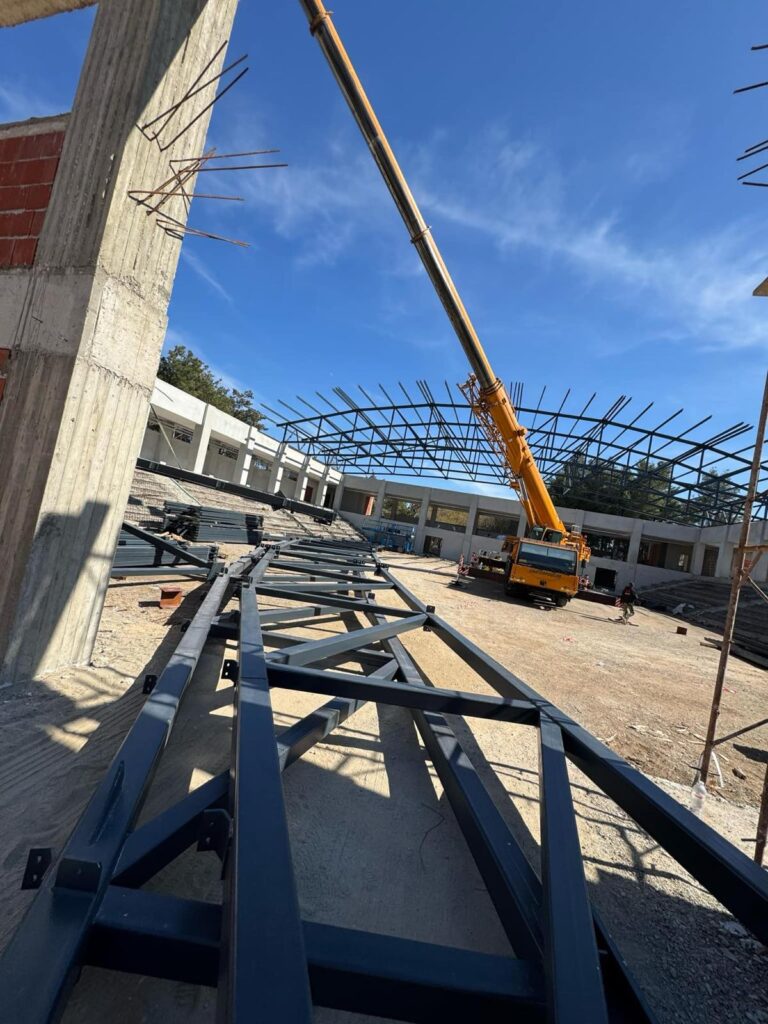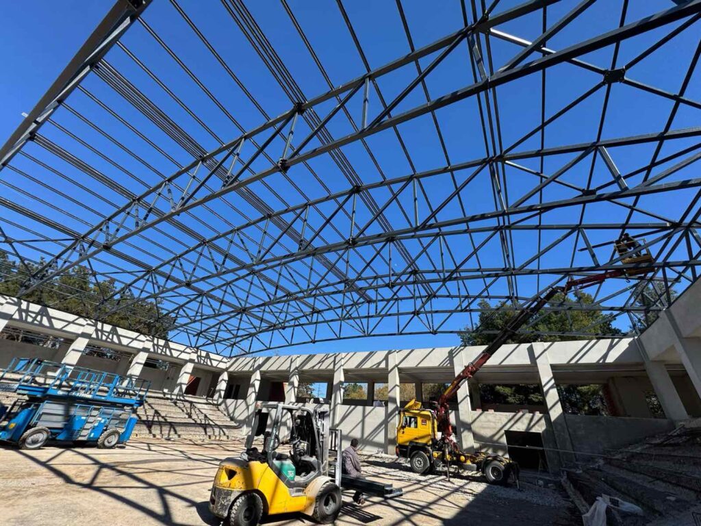 Η μεταλλική κατασκευή στέγης τύπου δικτυώματος, με άνοιγμα 41 μέτρων από άκρη σε άκρη, αποτελεί ένα δύσκολο και απαιτητικό έργο, τόσο στην κατασκευή όσο και στην υλοποίηση.